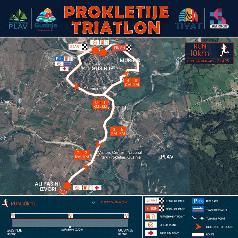 Competitors start with a 750m swimming event at Lake Plav, then ride a bicycle on a 20km long route to Gusinje, after which they have a run on a 5km long track that passes through Alipaša's springs - one of the largest karst springs in Montenegro and an unmissable tourist destination those who come to Prokletije.